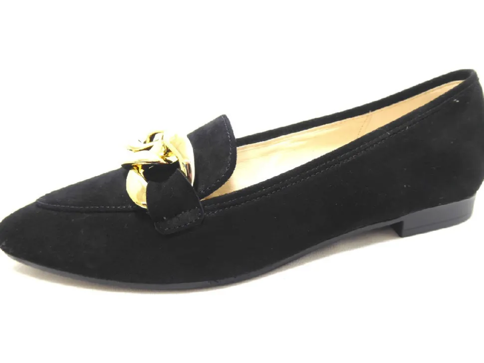 aus einem feinen hochwertigem Veloursleder. Innen ist der Schuh mit einem cromfrei gegerbtem Leder ausgestattet. Der Schuh hat eine normale Weite. Der Absatz hat eine Höhe von cirka 1 cm. Die Laufsohle ist aus Gummi. Die Schuhgröße fällt regulär aus.
