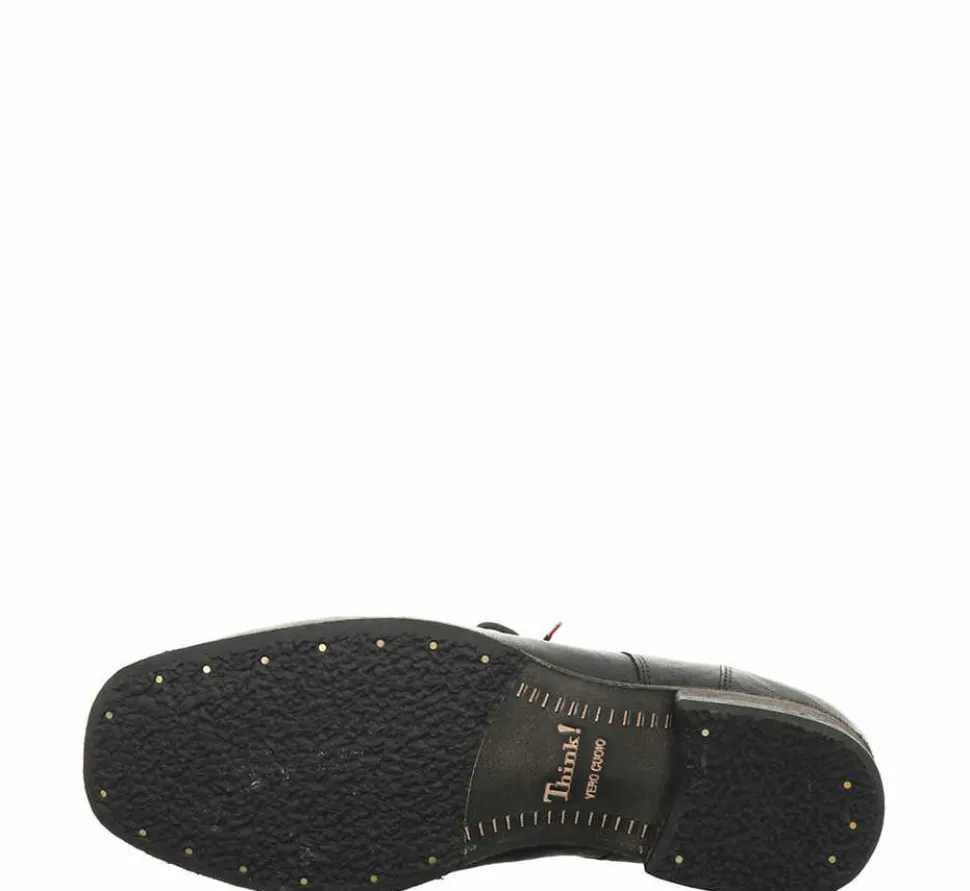 Schöne Herrenschnürschuhe von Think aus einem feinen hochwertigem Glattleder. Innen ist der Schuh mit einem cromfrei gegerbtem Leder ausgestattet. Der Schuh hat eine normale Weite. Der Blockabsatz hat eine Höhe von cirka 1 cm. Die Laufsohle ist aus Gummi. Der Artikel verfügt über einen Schnürverschluss. Die Schuhgröße fällt regulär aus.
