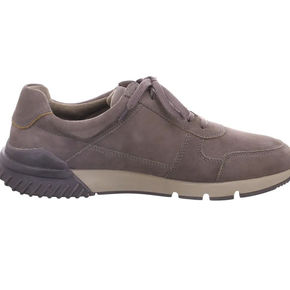 aus einem feinen hochwertigem Nubukleder. Innen ist der Schuh mit Kunstleder augestattet. Der Schuh hat eine normale Weite. Der Absatz ist durchgehend flach. Die Laufsohle ist aus Gummi. Der Artikel verfügt über einen Schnürverschluss. Die Schuhgröße fällt regulär aus.