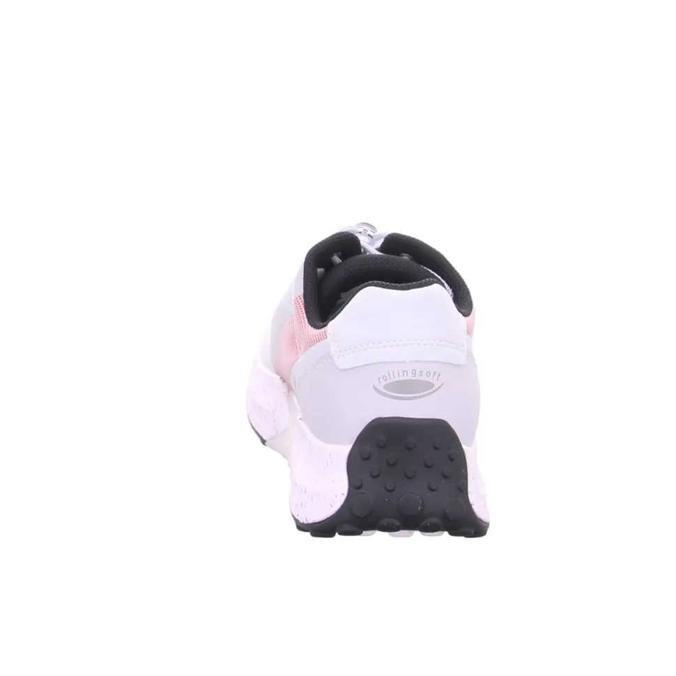 aus einem feinen Nylonmaterial. Innen ist der Schuh mit Kunstleder augestattet. Der Schuh hat eine normale Weite. Der Absatz ist durchgehend flach. Die Laufsohle ist aus Gummi. Die Schuhgröße fällt regulär aus.