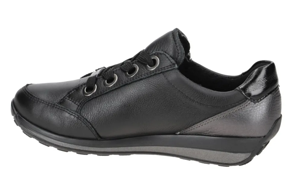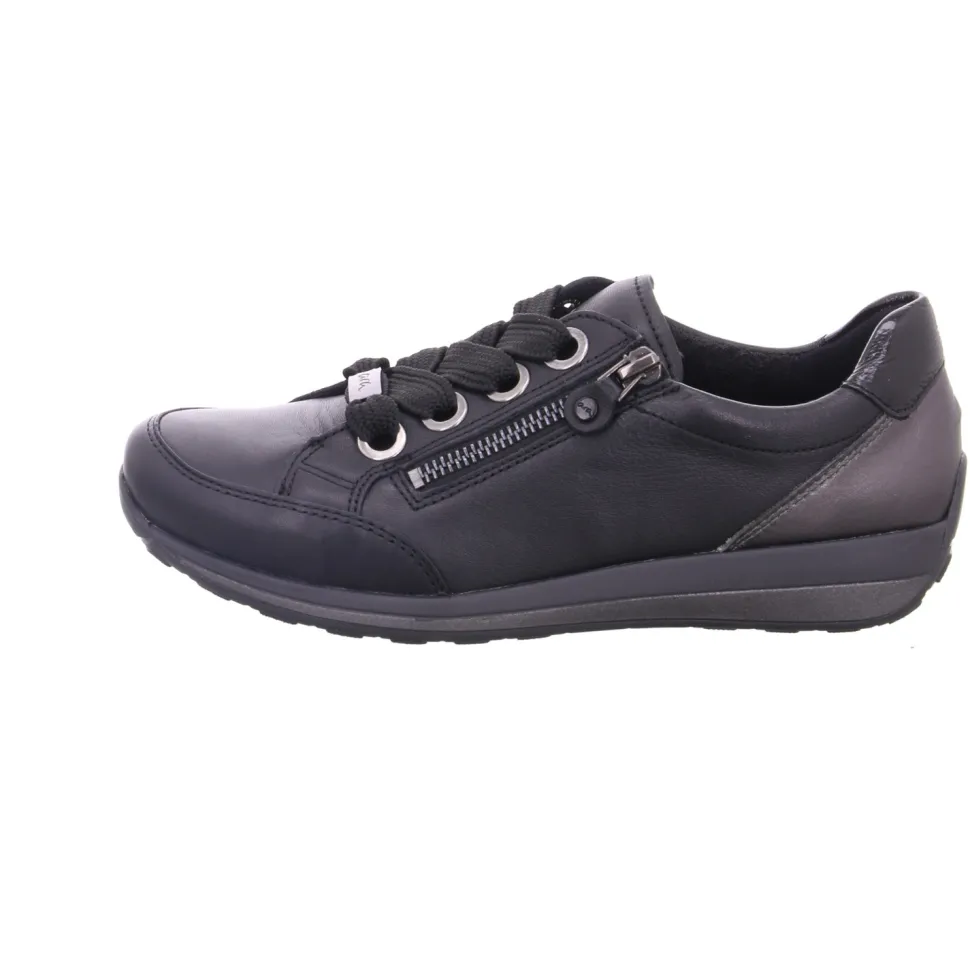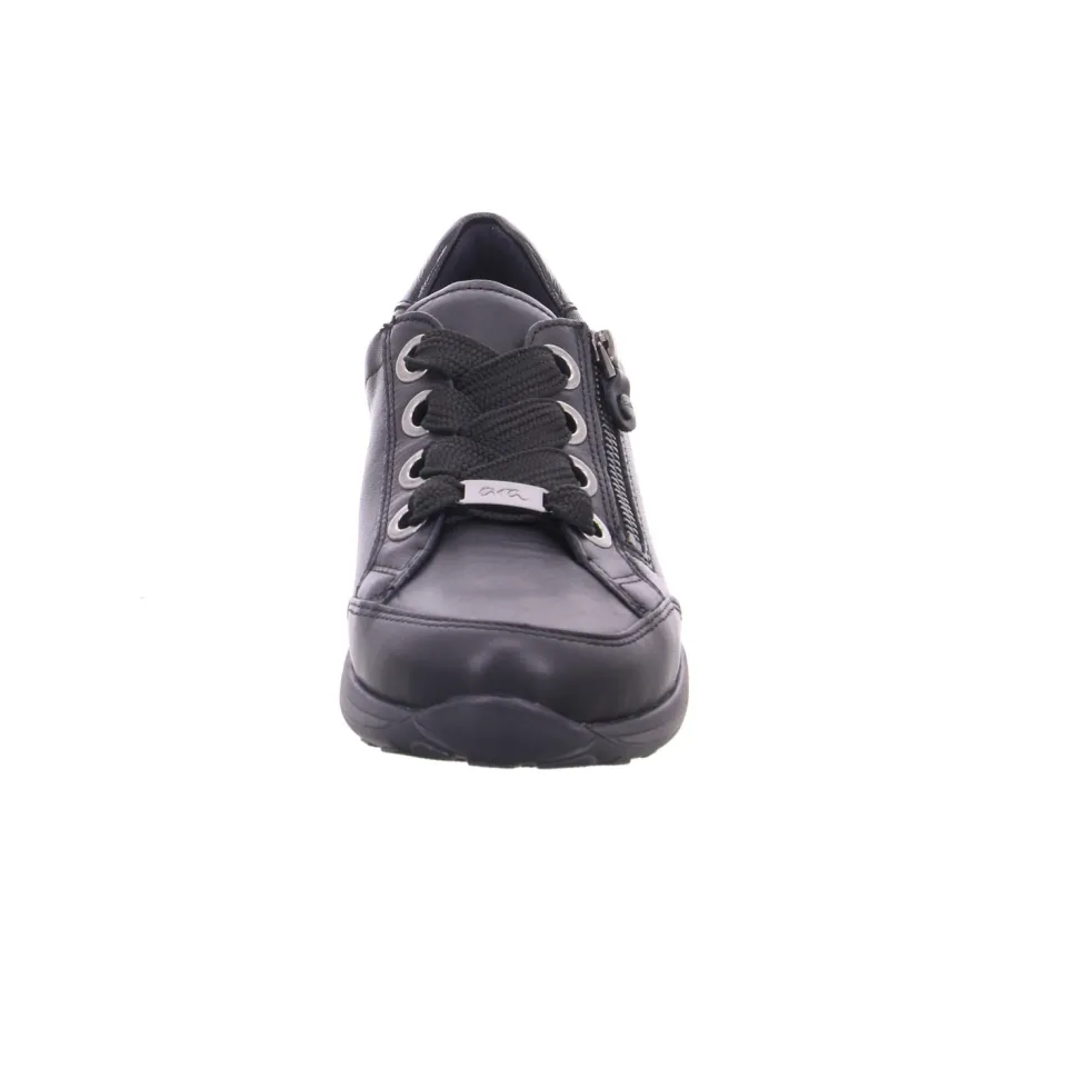 aus einem feinen hochwertigem Glattleder. Innen ist der Schuh mit hochwertiger Baumwolle augestattet. Der Schuh verfügt über eine etwas breitere Weite. Der Absatz ist durchgehend flach. Die Laufsohle ist aus Gummi. Der praktische Reißverschluss ist ideal zum einfachen an- und ausziehen. Die Schuhgröße fällt regulär aus.