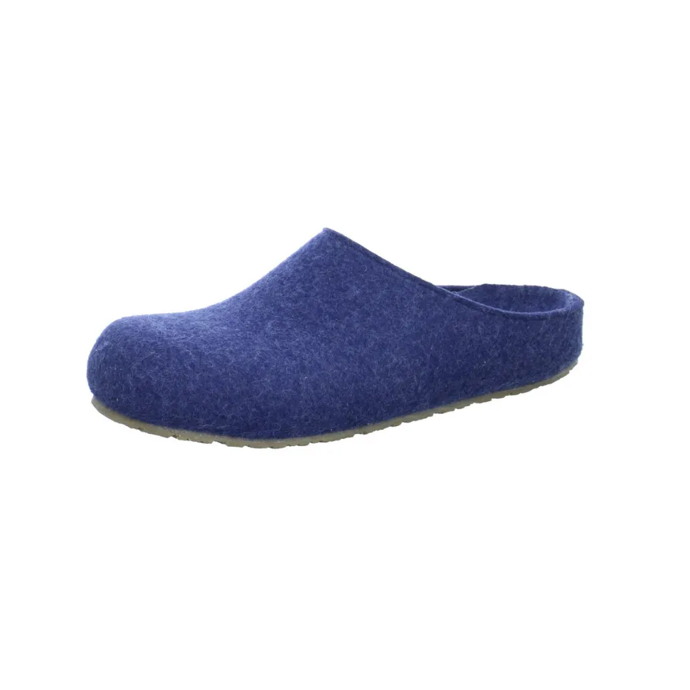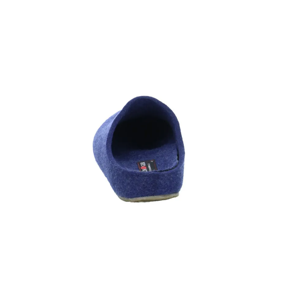Bequeme Hausschuhe für Herren von Haflinger aus einer hochwertigen Textilmaterial. Der Schuh hat eine normale Weite. Der Absatz ist durchgehend flach. Die Laufsohle ist aus Gummi. Die Schuhgröße fällt regulär aus.