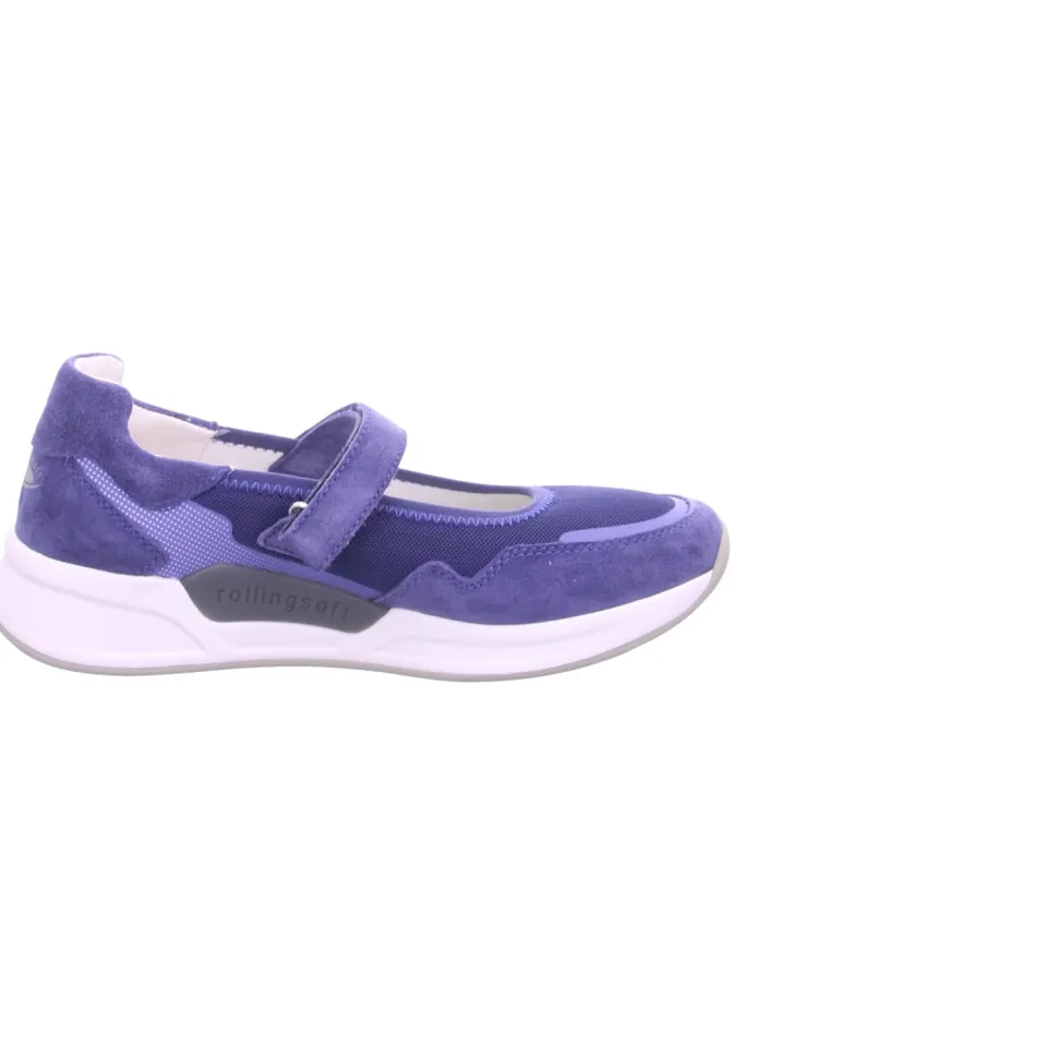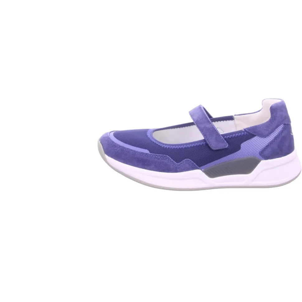 aus einem feinen Nylonmaterial. Innen ist der Schuh mit Kunstleder augestattet. Der Schuh hat eine normale Weite. Der Absatz ist durchgehend flach. Die Laufsohle ist aus Gummi. Der Klettverschluss zum einfachen und bequemen an- und ausziehen sorgt für einen guten Halt.Ebenfalls ist eine stufenlose Anpassung an den Fuß möglich. Die Schuhgröße fällt regulär aus.