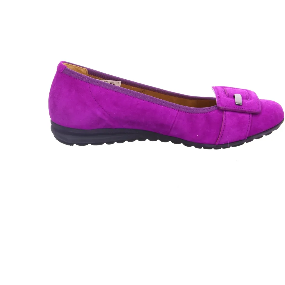 aus einem feinen hochwertigem Veloursleder. Innen ist der Schuh mit Kunstleder augestattet. Der Schuh hat eine normale Weite. Der Absatz ist durchgehend flach. Die Laufsohle ist aus Gummi. Die Schuhgröße fällt regulär aus.