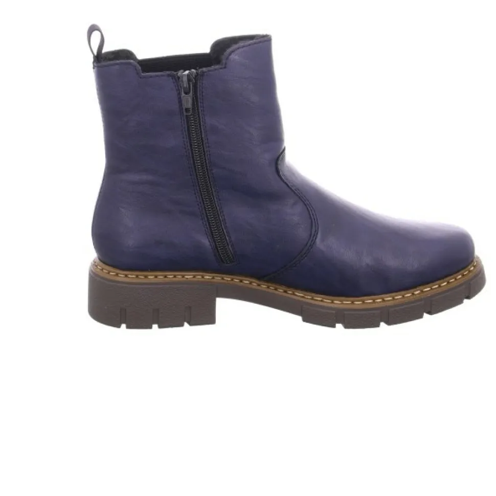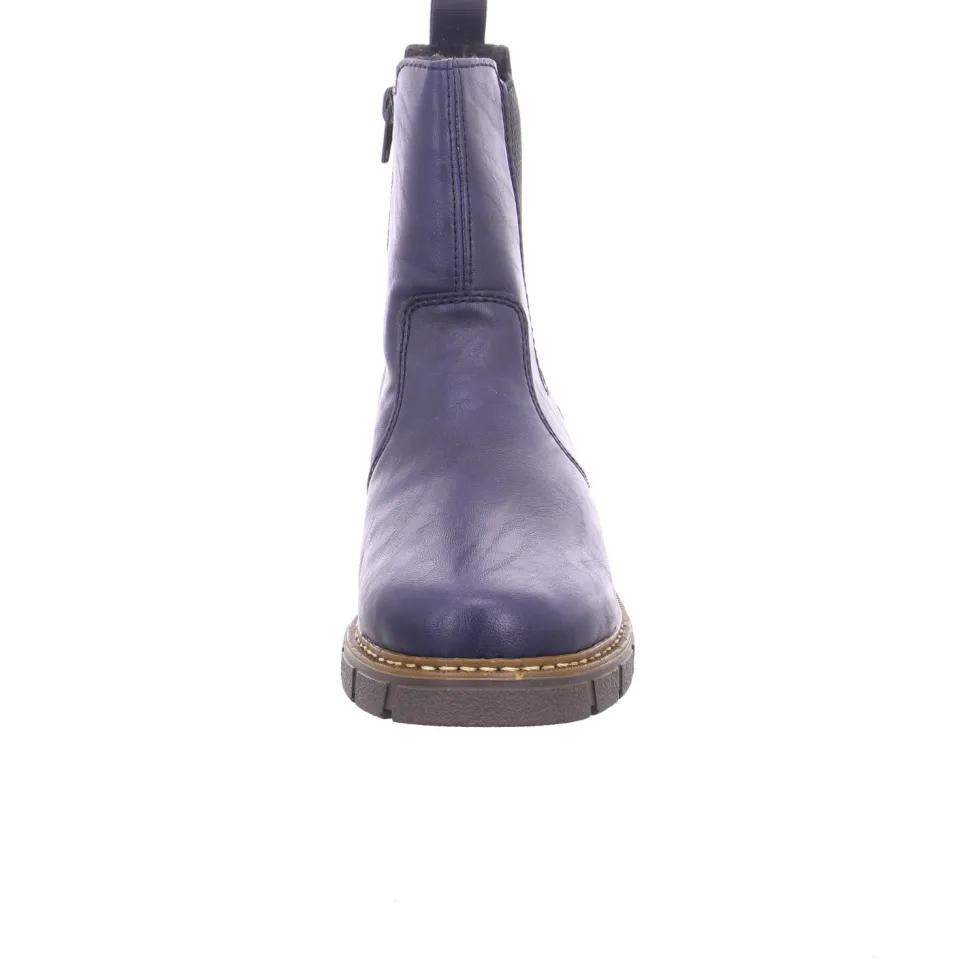 Schöne Damen Stiefeletten von Rieker aus einem hochwertigem Synthetikmaterial. Innen ist der Schuh mit einem hochwertigem Kunstfell ausgestattet. Der Schuh hat eine normale Weite. Der stabile Blockabsatz hat eine Höhe von cirka 2 cm. Die Laufsohle ist aus Gummi. Die Schuhgröße fällt regulär aus.