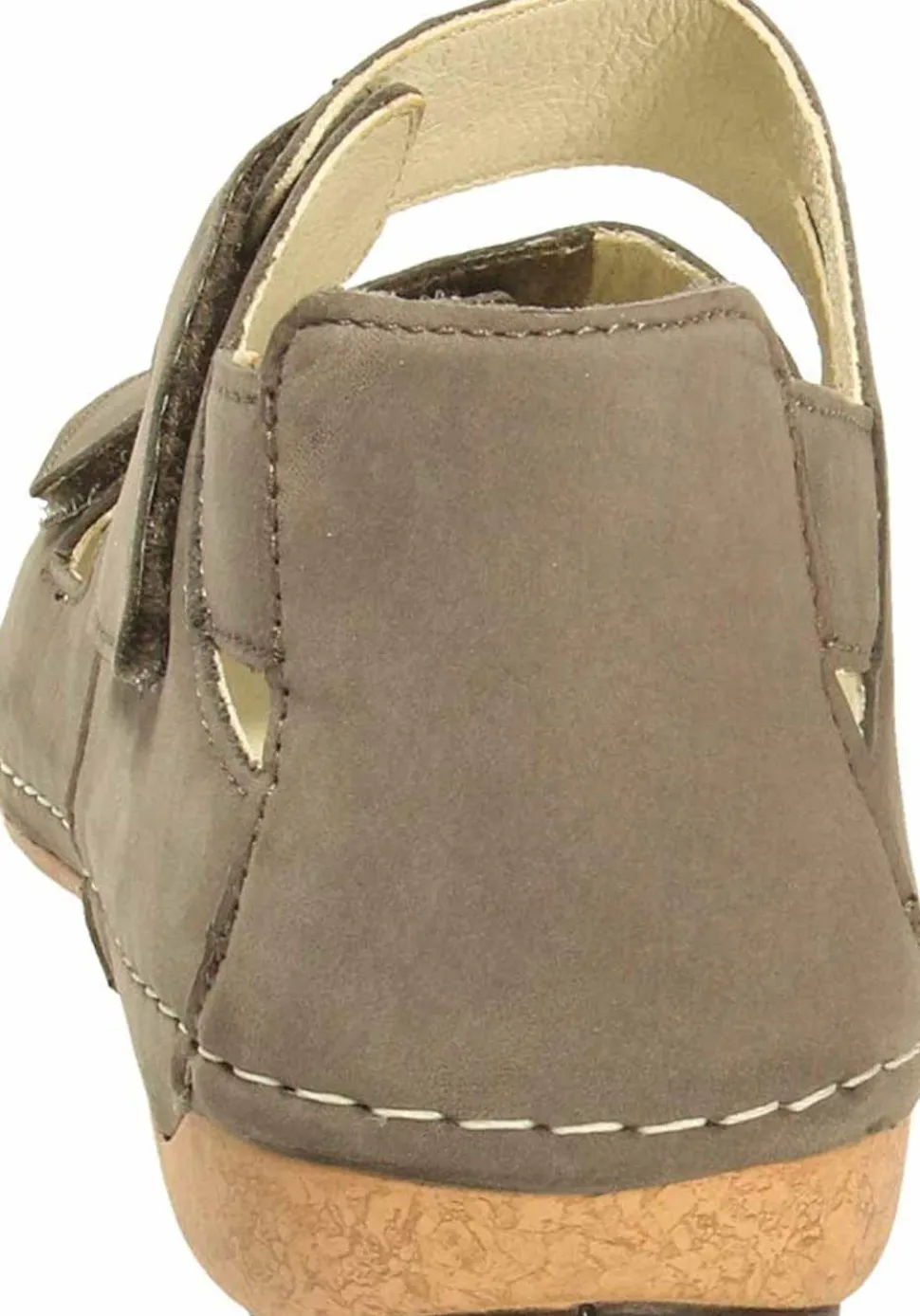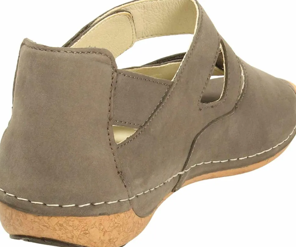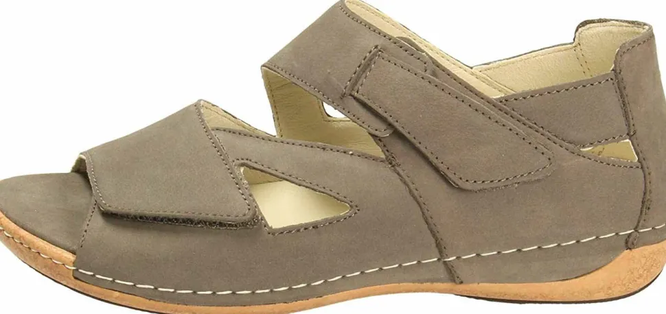 Schöne Sandalen von Waldläufer aus einem feinen hochwertigem Nubukleder. Innen ist der Schuh mit einem cromfrei gegerbtem Leder ausgestattet. Der Schuh verfügt über eine etwas breitere Weite. Der Keilabsatz hat eine Höhe von cirka 2 cm. Die Laufsohle ist aus Gummi. Der Klettverschluss zum einfachen und bequemen an- und ausziehen sorgt für einen guten Halt.Ebenfalls ist eine stufenlose Anpassung an den Fuß möglich. Die Schuhgröße fällt regulär aus.