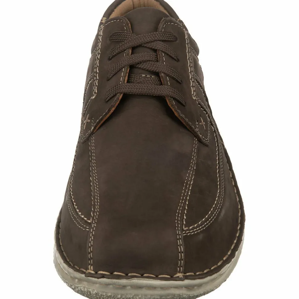 Schöne Herrenschnürschuhe von Josef Seibel aus angenehm weichem und hochertigem Leder. Innen ist der Schuh mit Kunstleder augestattet. Der Schuh verfügt über eine etwas breitere Weite. Der Absatz ist durchgehend flach. Die Laufsohle ist aus Krepp. Der Artikel verfügt über einen Schnürverschluss. Die Schuhgröße fällt regulär aus.