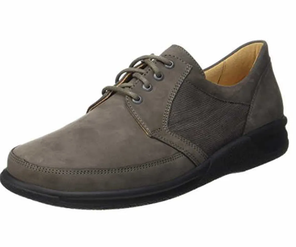 Schöner Herren Komfort-Schnürschuh von der Qualitäts-Marke Ganter aus einem feinen hochwertigem Veloursleder in der Farbe grau. Innen ist der Schuh mit einem cromfrei gegerbtem Leder ausgestattet. Die Decksohle ist aus echtem Leder verarbeitet und bietet optimalen Halt und Luftdurchlässigkeit. Der Schuh verfügt über eine etwas breitere Weite. Der Absatz ist durchgehend flach. 2 cm. Die rutschfeste Sohle des Schuhs bietet in jeder Wetterlage (Regen, Eis, Outdoor) einen guten Halt. Der Artikel verfügt über einen Schnürverschluß. Die runde Schuhspitze macht den Schuh elegant am Fuß und hat genügend Platz für Ihren Fuß und Ihre Fußzehen. Das Besondere an diesem Schuh ist der gepolsterte Lederdecksohle, die einen hohen Tragecomfort den ganzen Tag ermöglicht. Die Schuhe sind ideal für die Freizeit, da Comfort, Tragegefühl und Verarbeitung so ausgerichtet sind, dass Sie den ganzen Tag ohne Probleme tragen können.
