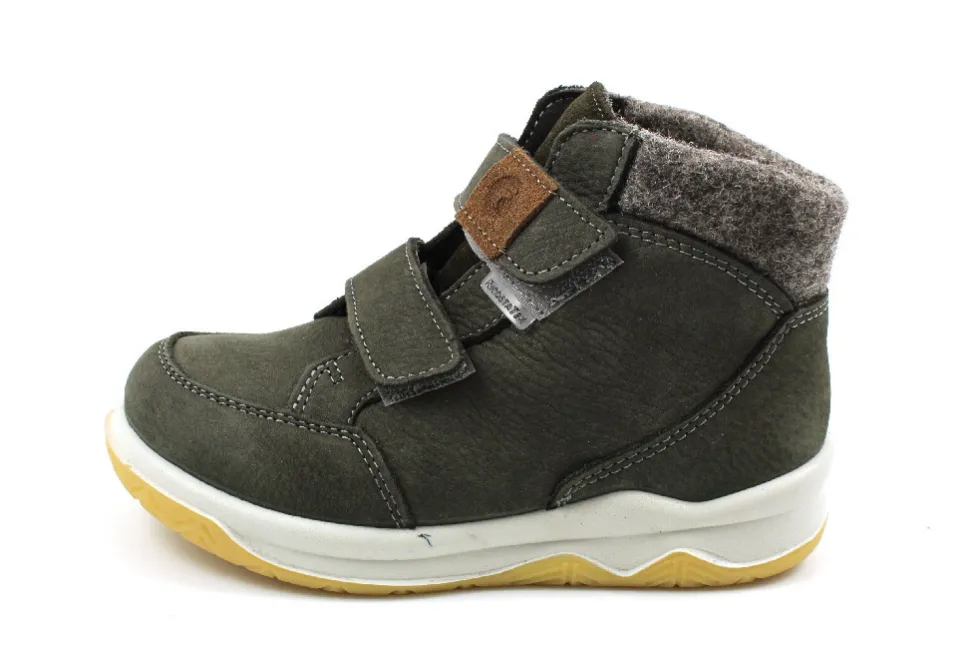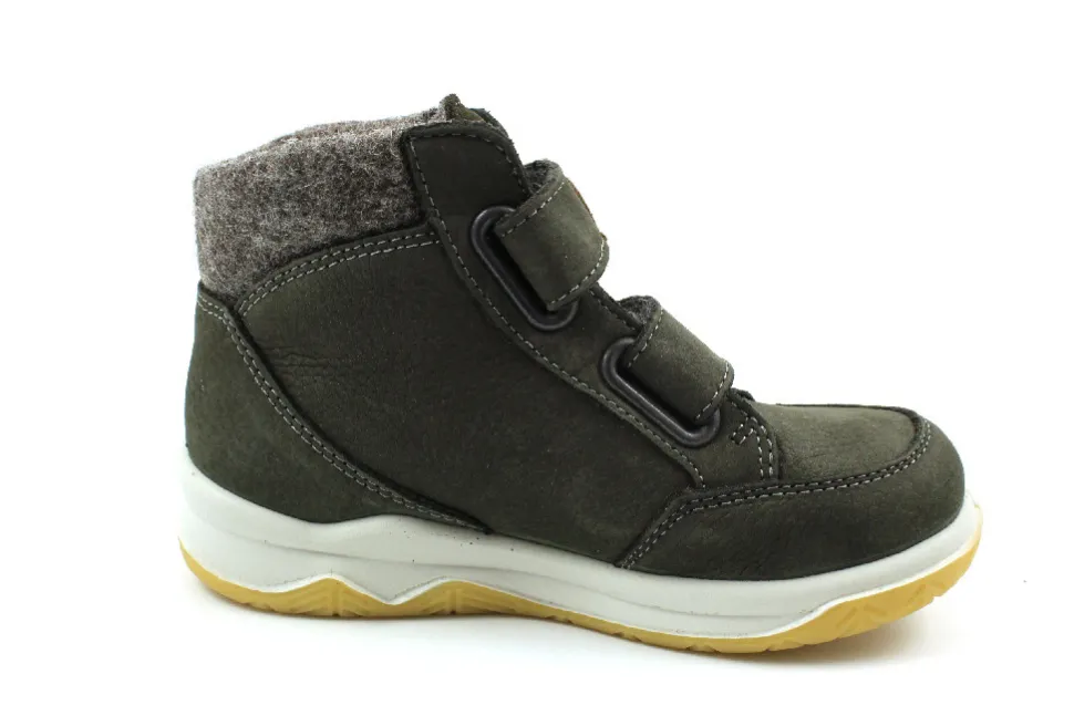 aus einem feinen hochwertigem Nubukleder. Innen ist der Schuh mit einer hochwertigen Wolle ausgestattet. Der Klettverschluss zum einfachen und bequemen an- und ausziehen sorgt für einen guten Halt.Ebenfalls ist eine stufenlose Anpassung an den Fuß möglich. Die Schuhgröße fällt regulär aus.