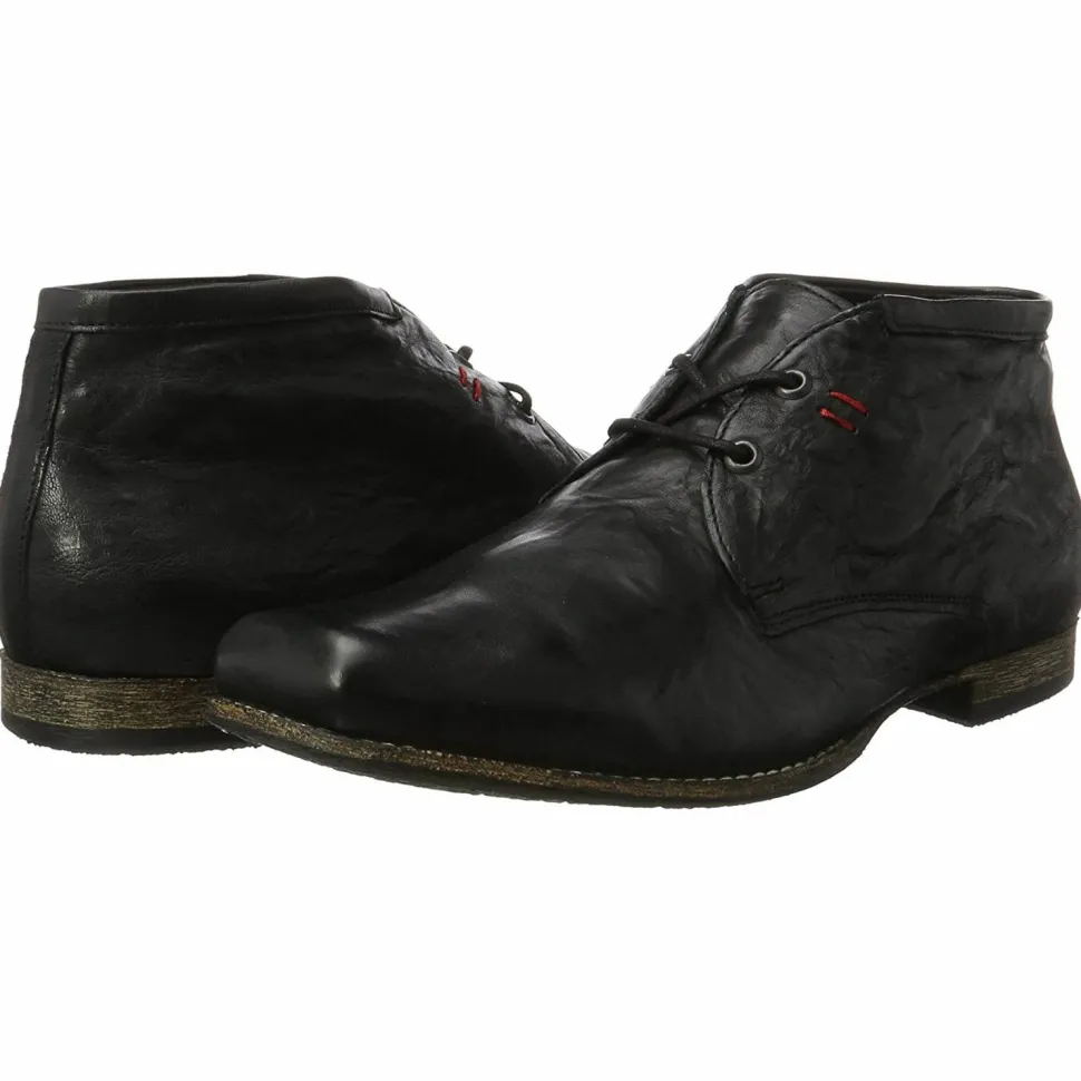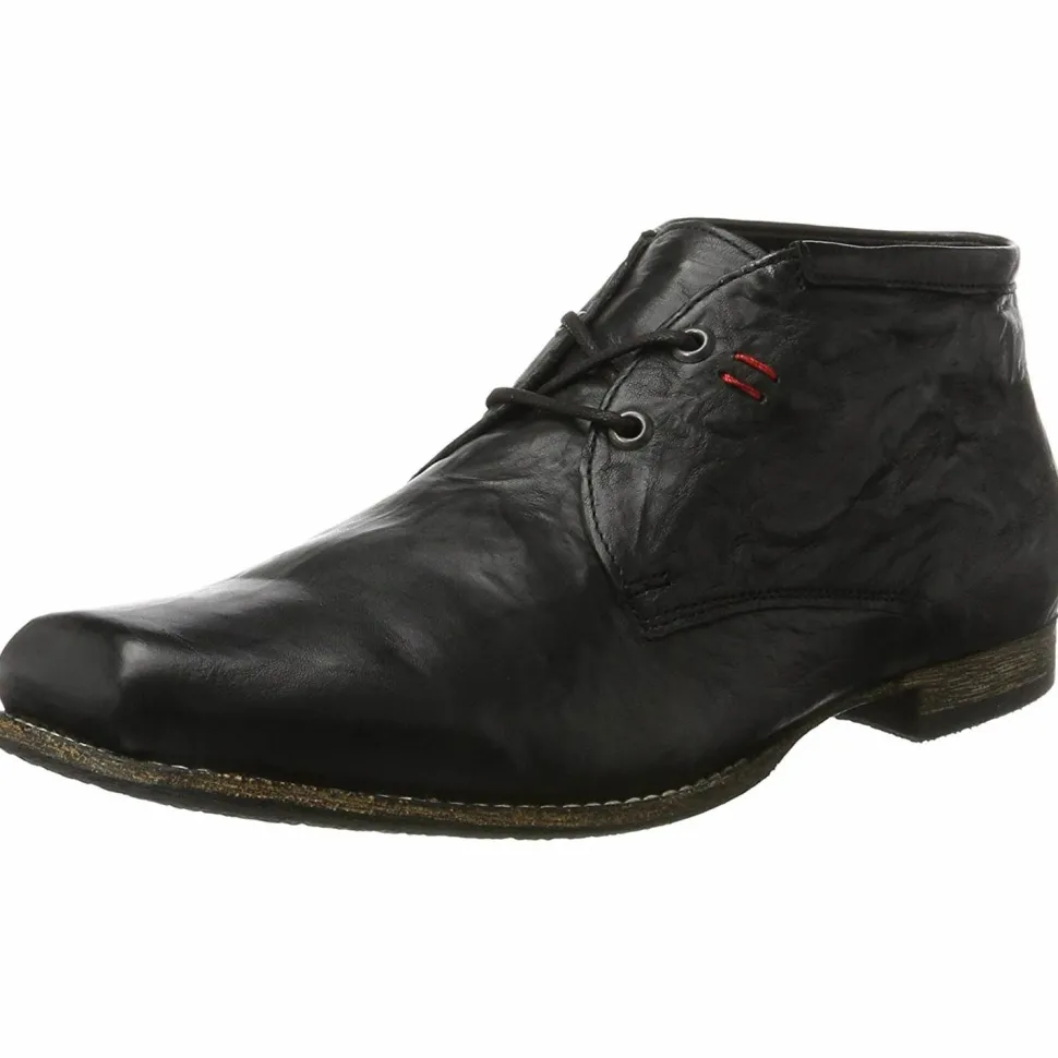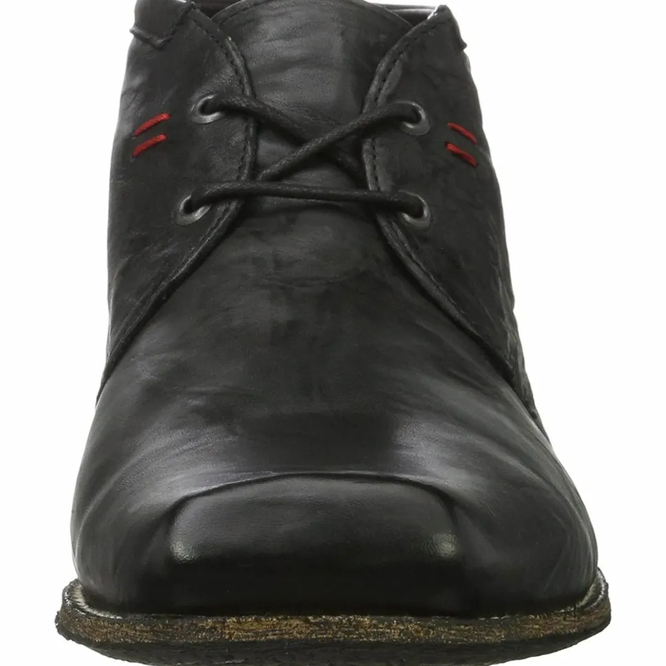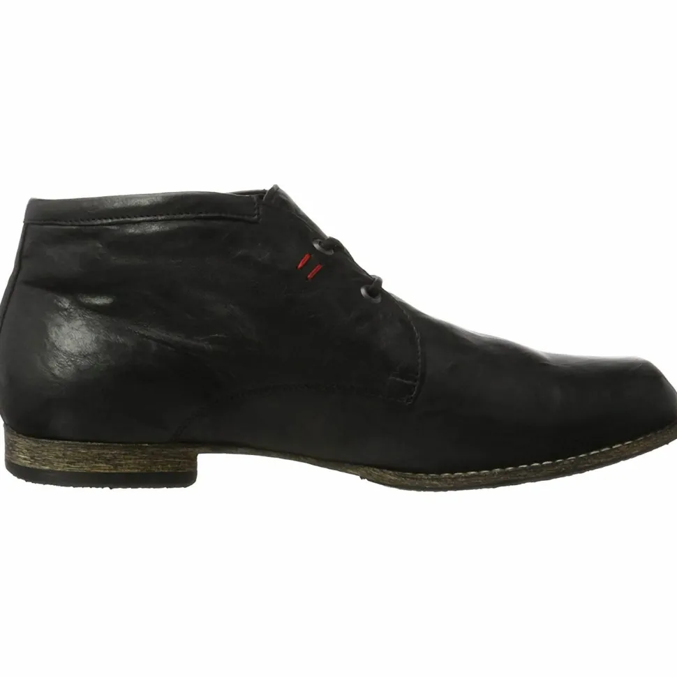 Herren Stiefel von Think aus angenehm weichem und hochertigem Leder. Innen ist der Schuh mit einem cromfrei gegerbtem Leder ausgestattet. Der Schuh hat eine normale Weite. Der stabile Blockabsatz hat eine Höhe von cirka 2 cm. Die Laufsohle ist aus Gummi. Die Schaftweite fällt normal aus (M-Schaft). Die Schuhgröße fällt regulär aus.
