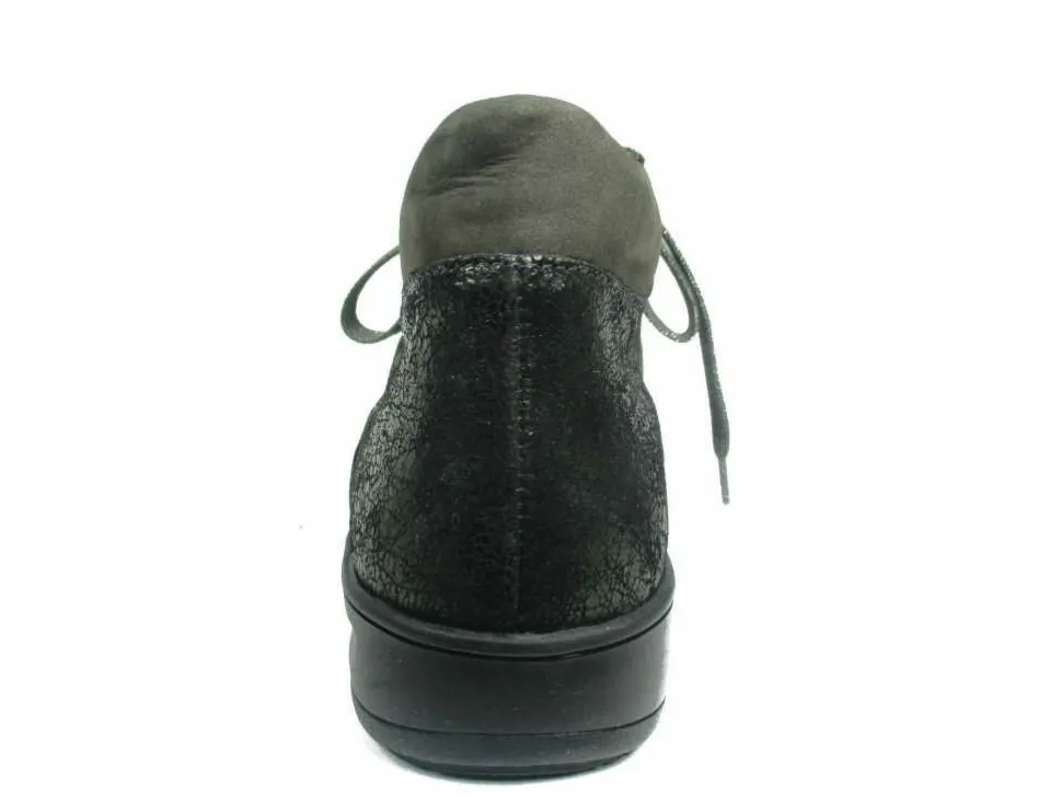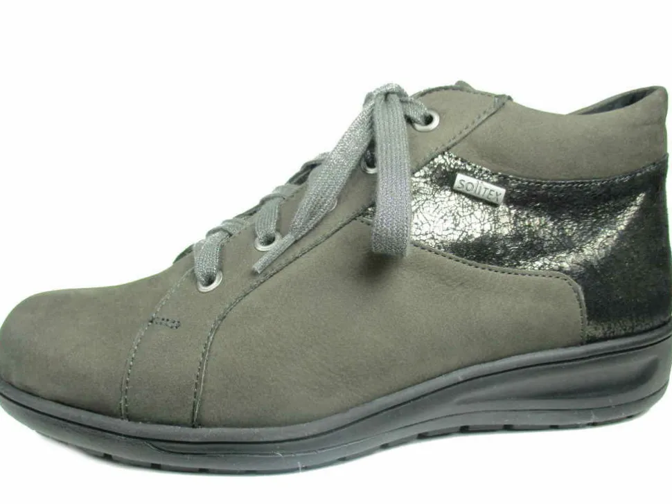 Schöne Damen Halbschuh von Solidus aus angenehm weichem und hochertigem Leder. Innen ist der Schuh mit einem cromfrei gegerbtem Leder ausgestattet. Der Schuh verfügt über eine etwas breitere Weite. Der Absatz ist durchgehend flach. Die Laufsohle ist aus Krepp. Der Artikel verfügt über einen Schnürverschluss. Die Schuhgröße fällt regulär aus.