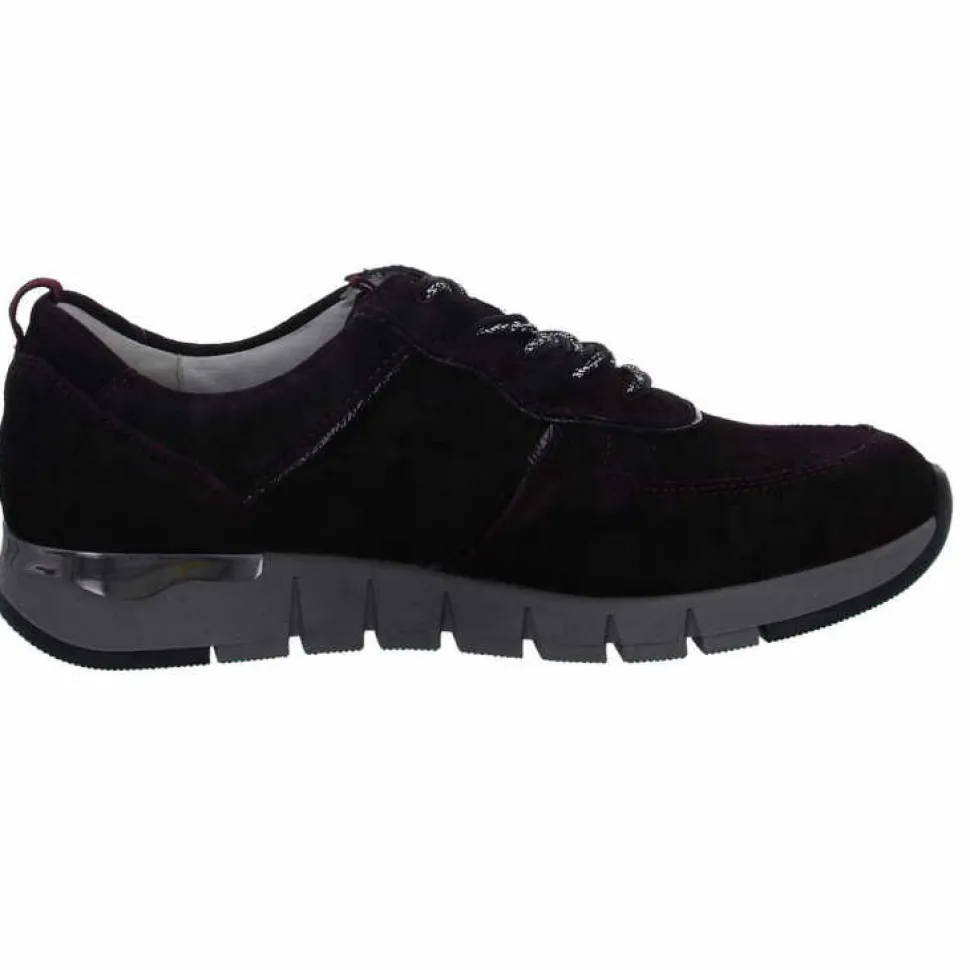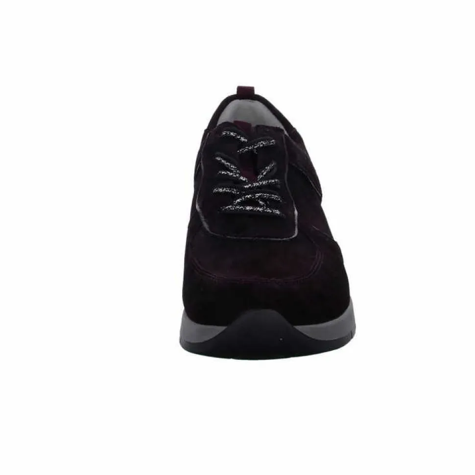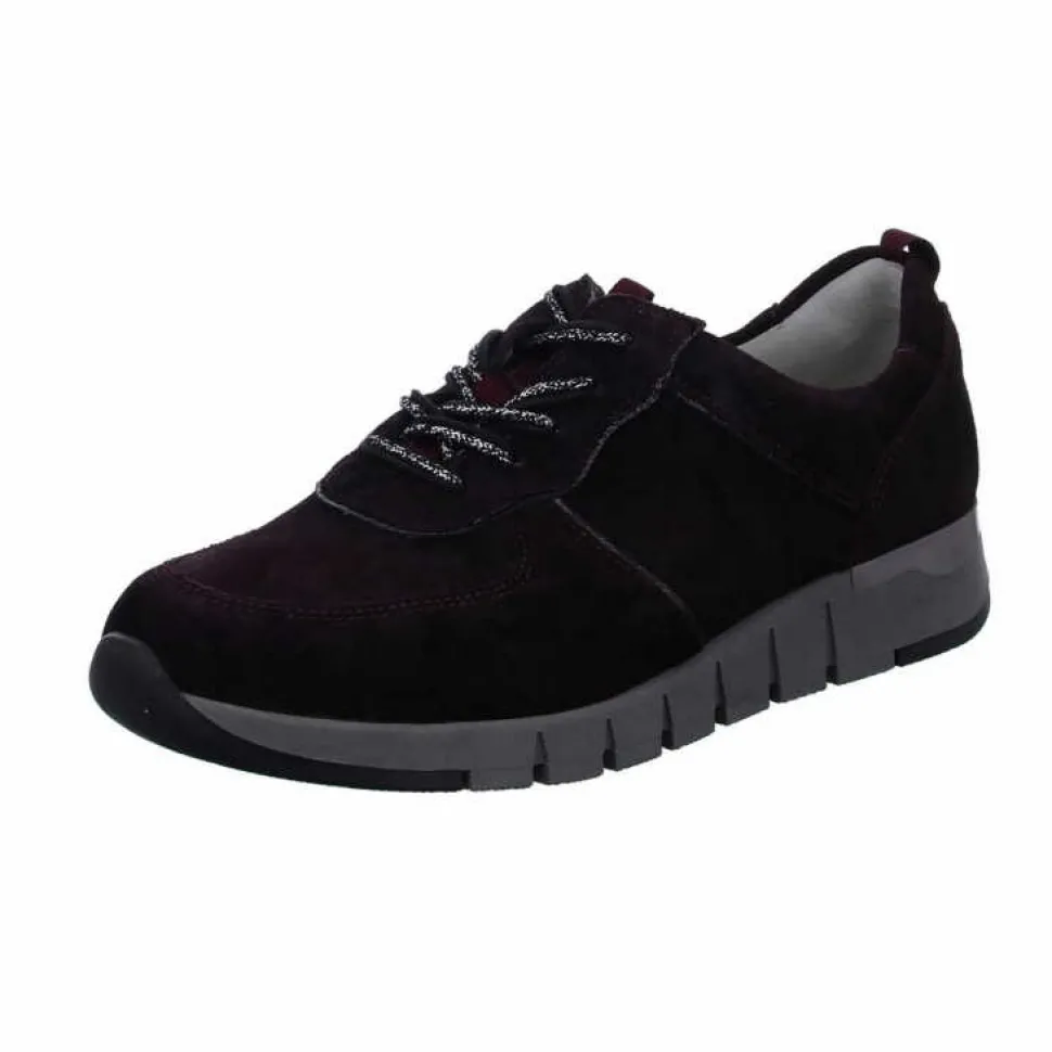 Flotte Damen Sneakers von Waldläufer aus angenehm weichem und hochertigem Leder. Innen ist der Schuh mit einem cromfrei gegerbtem Leder ausgestattet. Der Schuh verfügt über eine etwas breitere Weite. Der Absatz ist durchgehend flach. Die Laufsohle ist aus Gummi. Der Artikel verfügt über einen Schnürverschluss. Die Schuhgröße fällt regulär aus.