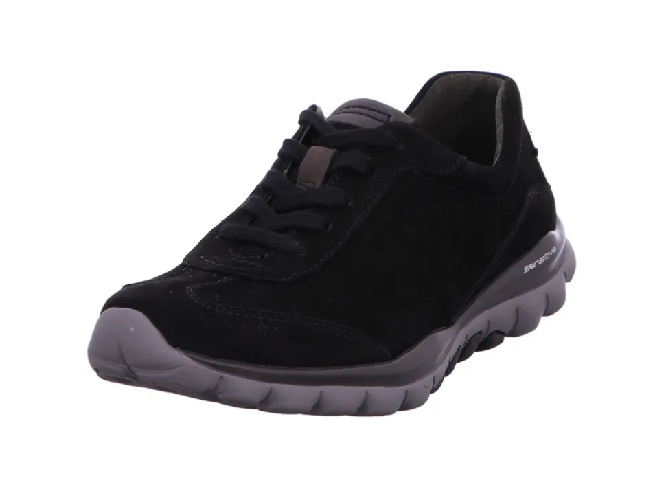 Flotte Damen Sneakers von Gabor aus einem feinen hochwertigem Veloursleder. Der Schuh hat eine normale Weite. Der Absatz ist durchgehend flach. Die Laufsohle ist aus Gummi. Der Artikel verfügt über einen Schnürverschluss. Die Schuhgröße fällt regulär aus.