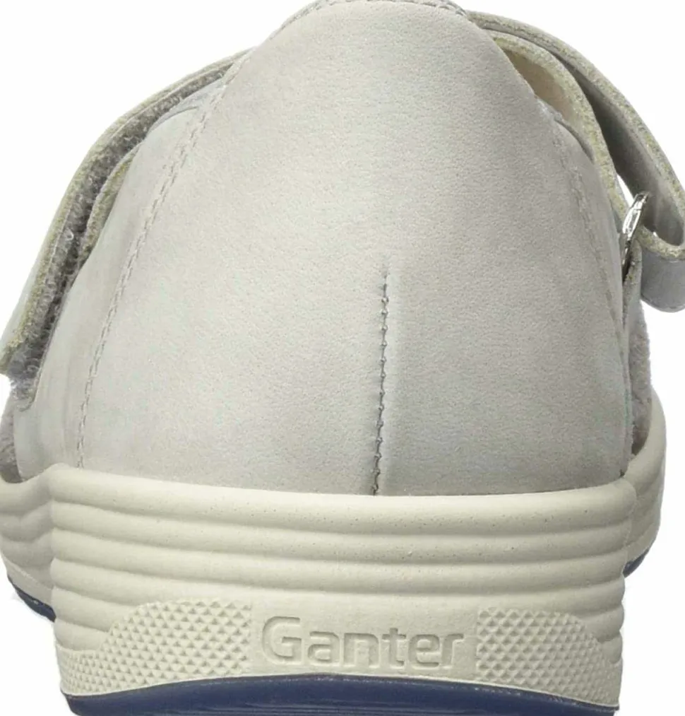 Schöne Ballerinas von Ganter aus einem feinen hochwertigem Veloursleder. Innen ist der Schuh mit einem cromfrei gegerbtem Leder ausgestattet. Der Schuh verfügt über eine etwas breitere Weite. Der Absatz ist durchgehend flach. Die weiche PU-Sohle schont die Gelenke und federt jeden Ihrer Tritte optimal ab. Der Klettverschluss zum einfachen und bequemen an- und ausziehen sorgt für einen guten Halt.Ebenfalls ist eine stufenlose Anpassung an den Fuß möglich. Die Schuhgröße fällt regulär aus.