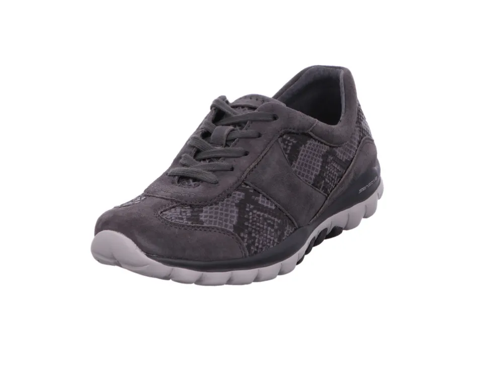 Damen Schnürschuhe von Gabor aus einem feinen hochwertigem Nubukleder. Innen ist der Schuh mit Textil augestattet. Der Schuh hat eine normale Weite. Der Absatz ist durchgehend flach. Die Laufsohle ist aus Gummi. Der Artikel verfügt über einen Schnürverschluss. Die Schuhgröße fällt regulär aus.