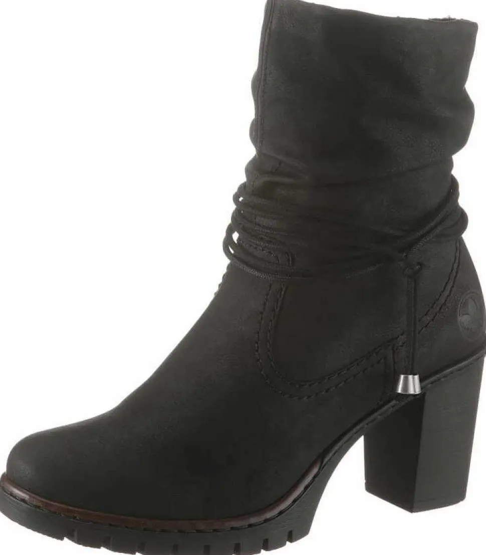 Schöne Damen Stiefeletten von Rieker aus einem feinen hochwertigem Kunstleder. Innen ist der Schuh mit Kunstleder augestattet. Der Schuh hat eine normale Weite. Der Trotteurabsatz hat eine Höhe von cirka 8 cm. Die Laufsohle ist aus Krepp. Der praktische Reißverschluss ist ideal zum einfachen an- und ausziehen. Die Schuhgröße fällt regulär aus.