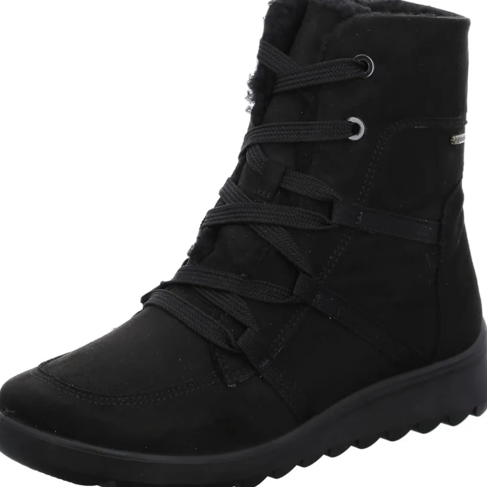 Schöne Damen Stiefelette von Ara aus einer hochwertigen Textilmaterial. Innen ist der Schuh mit einem leicht wärmenden Fleece ausgestattet. Die Laufsohle ist aus Gummi. Der Artikel verfügt über einen Schnürverschluss. Die Schuhgröße fällt regulär aus.