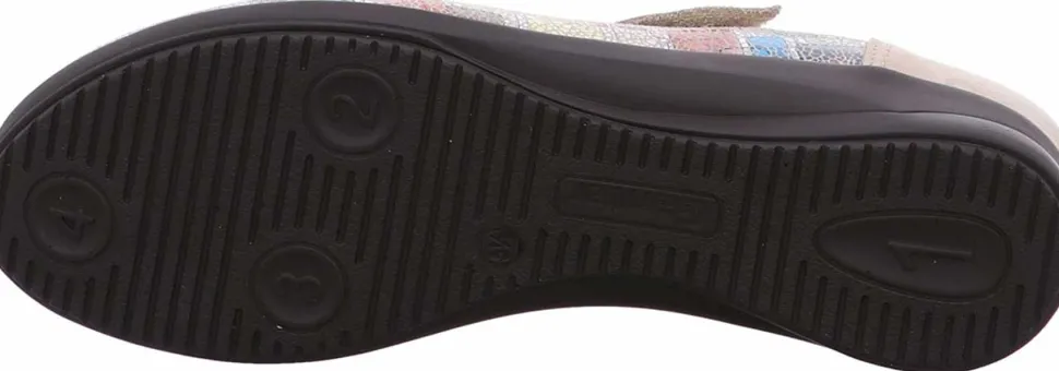 Innen ist der Schuh mit einem cromfrei gegerbtem Leder ausgestattet. Die Decksohle ist aus echtem Leder verarbeitet und bietet optimalen Halt und Luftdurchlässigkeit. Der Absatz hat eine Höhe von cirka 2 cm. Die Laufsohle ist aus Leder. Die abriebfeste Sohle des Schuhs ist so verarbeitet, dass man sie über viele Jahre tragen kann. Der Klettverschluß zum einfachen und bequemen an- und ausziehen sorgt für einen guten Halt an Fuß. Ebenfalls ist eine stufenlose Anpassung an den Fuß möglich. Die runde Schuhspitze macht den Schuh elegant am Fuß und hat genügend Platz für Ihren Fuß und Ihre Fußzehen. Dieser Schuh hat ein extra weiches Fußbett, so dass man den ganzen Tag den Schuh mit Comfort und Leichtigkeit tragen kann. Die Schuhe sind ideal für die Freizeit, da Comfort, Tragegefühl und Verarbeitung so ausgerichtet sind, dass Sie den ganzen Tag ohne Probleme tragen können.
