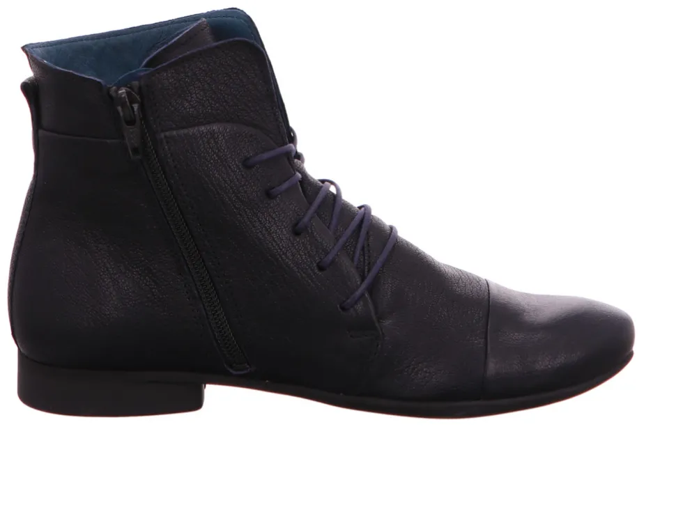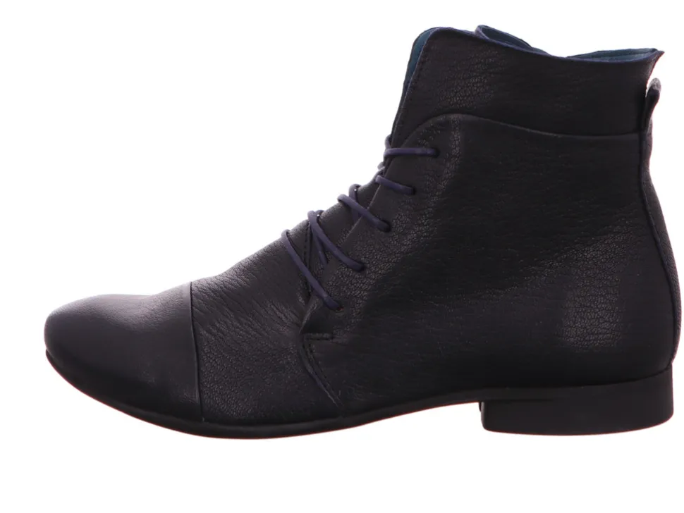 Schöne Damen Stiefeletten von Think aus einem feinen hochwertigem Glattleder. Innen ist der Schuh mit einem cromfrei gegerbtem Leder ausgestattet. Der Schuh hat eine normale Weite. Der stabile Blockabsatz hat eine Höhe von cirka 1 cm. Die Laufsohle ist aus Gummi. Der Artikel verfügt über einen Schnürverschluss. Die Schuhgröße fällt regulär aus.